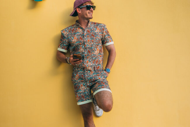 Jumpsuits für Männer werden in letzter Zeit immer beliebter. Nicht nur bei Frauen hat sich dieser bequeme Trend mittlerweile durchgesetzt, auch immer mehr Männer tragen dieses Kleidungsstück mit Überzeugung. Diese Überzeugung zeigen wir in unserem FPV One Shot!